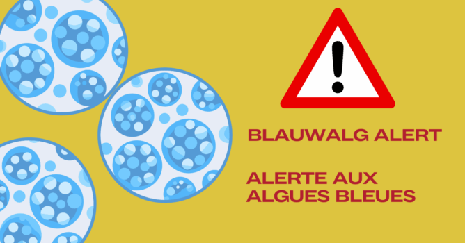 De lokale overheid meldt de aanwezigheid van blauwalgen (Cyanobacteriën) in het water.